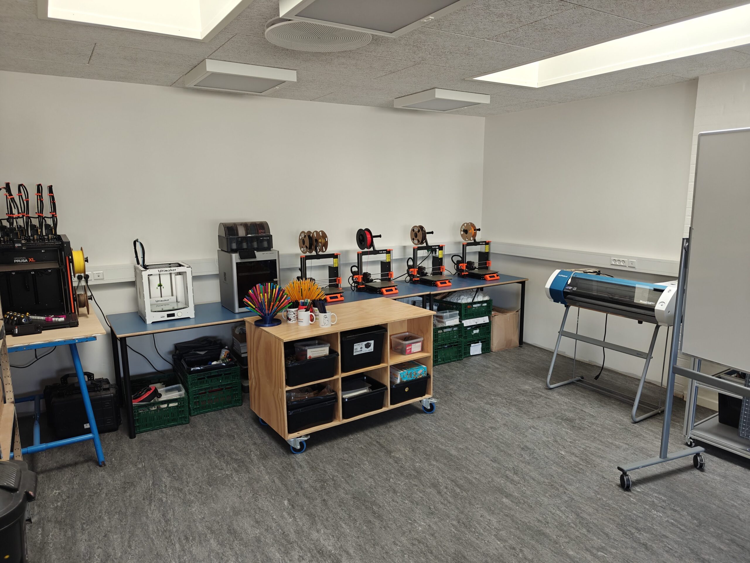 Velkommen til Morsø Ungdomsskoles makerspace. Her kan kreative sjæle tage deres projekter fra idéer til virkelighed vha. 3D-print, lasercut, folieprint- og skæring, sublimationsprint og meget andet…